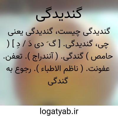 گندیدگی. [ گ َ دی دَ / دِ ] ( حامص ) گندگی. ( آنندراج ). تعفن. عفونت. ( ناظم الاطباء ). رجوع به گندگی و تعفن شود. || پوسیدگی. ( ناظم الاطباء ).