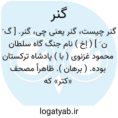 گنر. [ گ َ ن َ ] ( اِخ ) نام جنگ گاه سلطان محمود غزنوی ( با ) پادشاه ترکستان بوده. ( برهان ). ظاهراً مصحف «کتر» که فرخی در اشعار خود آورده: