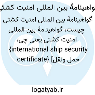 {international ship security certificate} [حمل ونقل دریایی] گواهینامه ای که پس از گذراندن ممیزی های لازم و حصول اطمینان از انطباق سامانۀ امنیتی کشتی با الزامات آیین نامۀ بین المللی امنیت کشتی ها و تسهیلات بندری صادر میشود اختـ. گباک ISSC