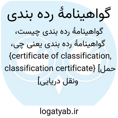 {certificate of classification, classification certificate} [حمل ونقل دریایی] گواهینامه ای که یکی از انجمن های رده بندی صادر و در آن ردۀ شناور را مشخص می کند