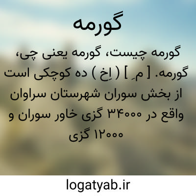 گورمه. [ م ِ ] ( اِخ ) ده کوچکی است از بخش سوران شهرستان سراوان واقع در 34000 گزی خاور سوران و 12000 گزی خاور راه مالرو سوران به ایرافشان. سکنه آن 30 تن است. ( از فرهنگ جغرافیایی ایران ج 8 ).