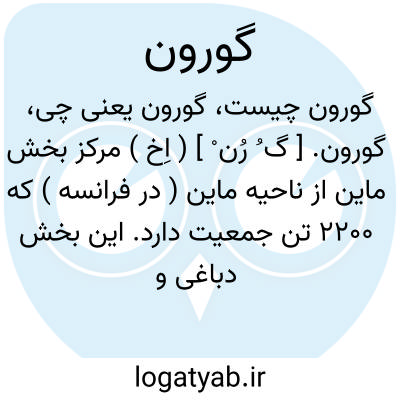گورون. [ گ ُ رُن ْ ] ( اِخ ) مرکز بخش ماین از ناحیه ماین ( در فرانسه ) که 2200 تن جمعیت دارد. این بخش دباغی و جوراب بافی و کفش سازی دارد.