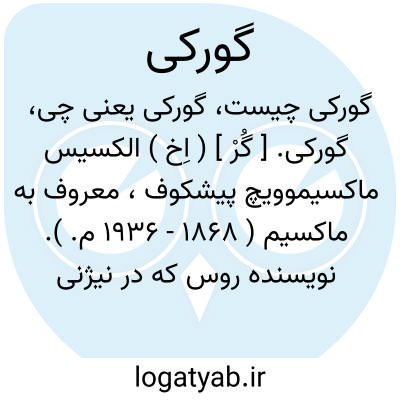 گورکی. [ گُرْ ] ( اِخ ) الکسیس ماکسیموویچ پیشکوف، معروف به ماکسیم ( 1868 - 1936 م. ). نویسنده روس که در نیژنی نووگورود متولد شد. برخی از آثارش عبارتند از: زندگانی کودکی من، ولگردان، مادر. سبک او سبک رئالیست است. رجوع به ماکسیم گورکی شود.