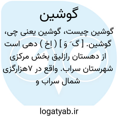 گوشین. [ گ َ وَ ] ( اِخ ) دهی است از دهستان رازلیق بخش مرکزی شهرستان سراب. واقع در 7هزارگزی شمال سراب و 7هزارگزی شوسه سراب به اردبیل. جلگه و معتدل و سکنه آن 280 تن است. آب آن از چشمه و محصول آن غلات و شغل اهالی زراعت و گله داری و راه آن مالرو است. ( از فرهنگ جغرافیایی ایران ج 4 ).