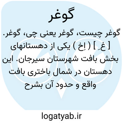 گوغر. [ غ ِ ] ( اِخ ) یکی از دهستانهای بخش بافت شهرستان سیرجان. این دهستان در شمال باختری بافت واقع و حدود آن بشرح زیر است: از طرف شمال به دهستان بلورد و کوه پنج، از خاور به دهستان گیسکان، از جنوب به دهستان فتح آباد و از باختر به دهستان بلورد. موقعیت آن کوهستانی و هوای آن سرد و محصول عمده آن غلات و حبوبات و لبنیات و شغل سکنه زراعت و گله داری است. این دهستان از 34 آبادی بزرگ و کوچک تشکیل شده و جمعیت آن در حدود 7500 تن است. مرکز دهستان قریه گوغر است. ( از فرهنگ جغرافیایی ایران ج 8 ).