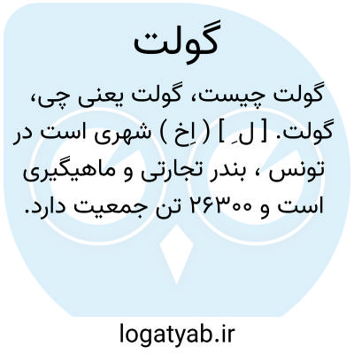 گولت. [ ل ِ ] ( اِخ ) شهری است در تونس، بندر تجارتی و ماهیگیری است و 26300 تن جمعیت دارد.