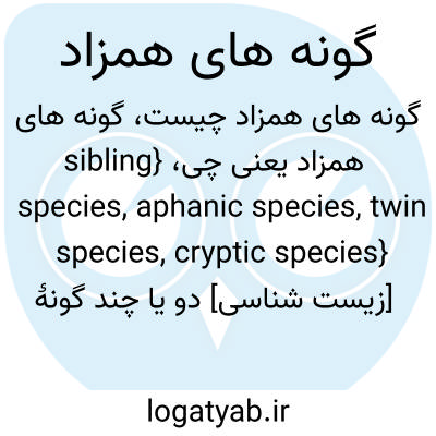 {sibling species, aphanic species, twin species, cryptic species} [زیست شناسی] دو یا چند گونۀ خویشاوند که ازلحاظ ریخت شناسی غیرمتمایز و ازلحاظ تولید مثل مجزا هستند