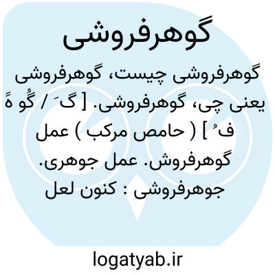 گوهرفروشی. [ گ َ / گُو هََ ف ُ ] ( حامص مرکب ) عمل گوهرفروش. عمل جوهری. جوهرفروشی:
