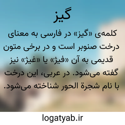 کلمه‌ی «گیز» در فارسی به معنای درخت صنوبر است و در برخی متون قدیمی به آن «فیژ» یا «غیژ» نیز گفته می‌شود. در عربی، این درخت با نام شجرة الحور شناخته می‌شود و در فارسی گاهی به آن سپیدار هم اطلاق می‌شود. گیز از خانواده تیرة مخروطیان بوده و جزو درختان همیشه سبز و زینتی به شمار می‌آید. برگ‌های آن متناوب و سوزنی شکل هستند و چوب این درخت در صنایع دستی، به ویژه منبت‌کاری و ساخت وسایل تزئینی کاربرد دارد. این درخت علاوه بر ارزش زینتی، در فضای سبز و باغ‌ها نیز کاشته می‌شود و با توجه به استقامت و زیبایی‌اش، محبوبیت زیادی دارد. به طور کلی، «گیز» درختی همیشه سبز، زیبا و مفید است که هم در صنایع دستی و هم در منظره‌سازی کاربرد فراوان دارد.