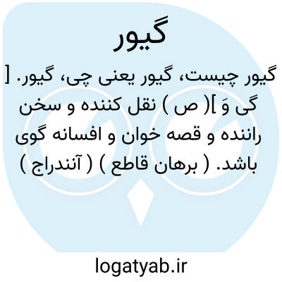 گیور. [ گی وَ ]( ص ) نقل کننده و سخن راننده و قصه خوان و افسانه گوی باشد. ( برهان قاطع ) ( آنندراج ) ( انجمن آرا ) ( ناظم الاطباء ). نقال. قوال. گوینده. || ( اِ ) در اصطلاح علمی به معنی حس مشترک است و آن قوه ای است مرتب در مقدم تجویف دماغ و اجتماع صور محسوسات پیش او باشد که اگر او نباشد ما حکم نتوانیم کرد که این سفید است و آن سیاه و این ساکن است و آن متحرک. ( برهان قاطع ) ( آنندراج ) ( انجمن آرا ).
