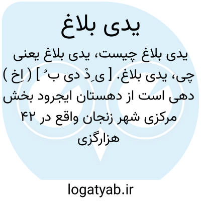 یدی بلاغ. [ ی ِدْ دی ب ُ ] ( اِخ ) دهی است از دهستان ایجرود بخش مرکزی شهر زنجان واقع در 42 هزارگزی جنوب باختری زنجان. دارای 188 تن سکنه است. آب آن از چشمه و راه آن مالرو است. ( از فرهنگ جغرافیایی ایران ج 2 ).