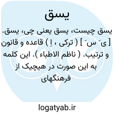 یسق. [ ی َ س َ ] ( ترکی، اِ ) قاعده و قانون و ترتیب. ( ناظم الاطباء ). این کلمه به این صورت در هیچیک از فرهنگهای دیگر که در دسترس بود نیامده. احتمالاً «نسق » است یا ظاهراً صورتی از «یساق » می باشد. رجوع به «یساق » شود.