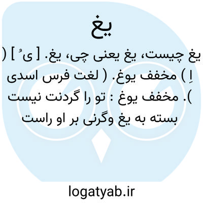 یغ. [ ی ُ ] ( اِ ) مخفف یوغ. ( لغت فرس اسدی ). مخفف یوغ:
