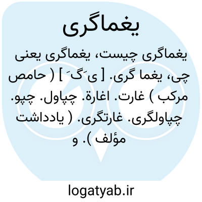 یغما گری. [ ی َگ َ ] ( حامص مرکب ) غارت. اغارة. چپاول. چپو. چپاولگری. غارتگری. ( یادداشت مؤلف ). و رجوع به یغما شود.