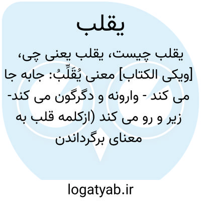[ویکی الکتاب] معنی یُقَلِّبُ: جابه جا می کند - وارونه و دگرگون می کند- زیر و رو می کند (ازکلمه قلب به معنای برگرداندن چیزی از این رو به آن رو است، و چون به باب تفعیل برود مبالغه در این عمل را میرساند، پس تقلیب یعنی بسیار زیرورو کردن یک چیزی، و تقلب هم قبول همان تقلیب است پس تق...