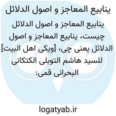 [ویکی نور] ینابیع المعاجز و أصول الدلائل نوشته سید هاشم بحرانی، کتابی است به زبان عربی با موضوع تاریخ و کلام شیعه که با تحقیق فارس حسون کریم منتشر شده است.