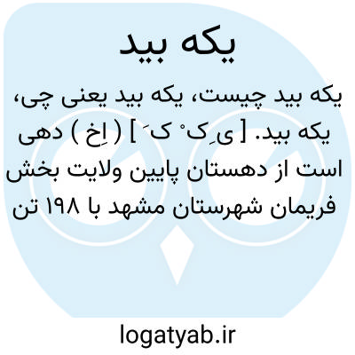 یکه بید. [ ی ِک ْ ک َ ] ( اِخ ) دهی است از دهستان پایین ولایت بخش فریمان شهرستان مشهد با 198 تن سکنه. ( از فرهنگ جغرافیایی ایران ج 9 ).