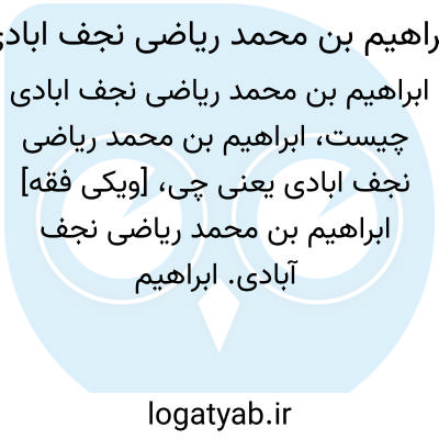 [ویکی فقه] ابراهیم بن محمد ریاضی نجف آبادی. ابراهیم ریاضی نجف آبادی اصفهانی، از علما و فقهای قرن چهارده هجری در اصفهان بوده است.