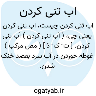 ( آب تنی کردن ) آب تنی کردن. [ ت َ ک َ دَ ] ( مص مرکب ) غوطه خوردن در آب سرد بقصد خنک شدن.