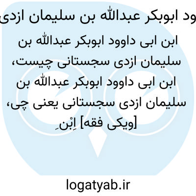 [ویکی فقه] اِبْن ِ اَبى داوود، ابوبکر عبدالله بن سلیمان بن اشعث بن اسحاق ابن بشیربن شداد بن عمرو (یحیى ) بن عمران ازدی سجستانى (۲۳۰- ۳۱۶ق /۸۴۴ - ۹۲۸م )، قاری، فقیه و از حافظان بنام حدیث بوده است.