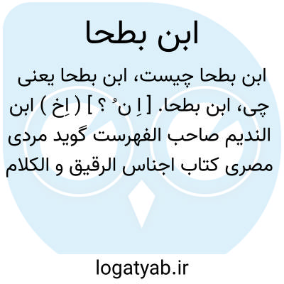 ابن بطحا. [ اِ ن ُ ؟ ] ( اِخ ) ابن الندیم صاحب الفهرست گوید مردی مصری کتاب اجناس الرقیق و الکلام علیه را در صد ورقه به نام او نوشته است.