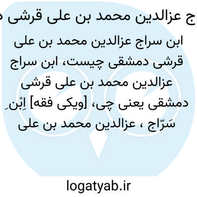 [ویکی فقه] اِبْن ِ سَرّاج، عزالدین محمد بن علی بن عبدالرحمان قرشی دمشقی (د ۷۴۷ق /۱۳۴۶م )، محدث و صوفی است.