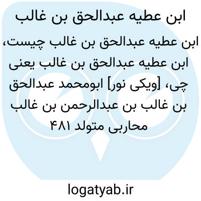 [ویکی نور] ابومحمد عبدالحق بن غالب بن عبدالرحمن بن غالب محاربی متولد 481 ق-1088 م و متوفای 541 ق-1147 م، مفسر و محدث مالکی مذهب و از رجال سیاسی اندلس در دورۀ مرابطون. نیای بزرگ وی عطیه از مهاجران عرب به اندلس بود و نسبش به تیرۀ محارب از بنی مضر می رسید.موطن او غرناطه بود.وی در خاندانی از اهل علم و ادب پرورش یافت و پدرش از نخستین استادان او بود که در شکل گیری شخصیت علمی وی نقش بسزایی داشت.