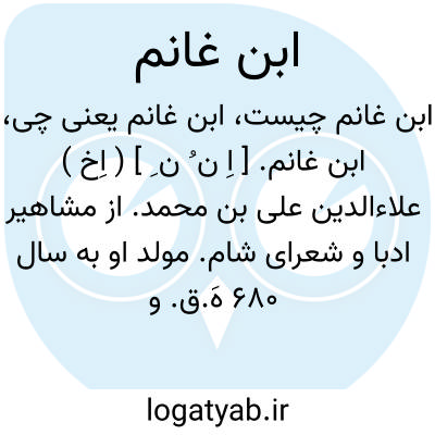 ابن غانم. [ اِ ن ُن ِ ] ( اِخ ) جمال الدین عبداﷲبن علی بن محمدبن غانم، پسر علاءالدین علی بن غانم. یکی از ادبا و شعرای شام.