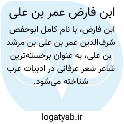 [ویکی نور] ابن فارض، ابوحفص شرف الدین عمر بن علی بن مرشد بن علی (576 -632ق)، بزرگ ترین سراینده شعر صوفیانه در ادبیات عرب است.