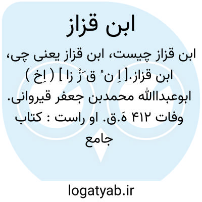 ابن قزاز.[ اِ ن ُ ق َزْ زا ] ( اِخ ) ابوعبداﷲ محمدبن جعفر قیروانی. وفات 412 هَ.ق. او راست: کتاب جامع در لغت.