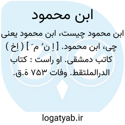 ابن محمود. [ اِ ن ُ م َ ] ( اِخ ) کاتب دمشقی. او راست: کتاب الدرالملتقط. وفات 753 هَ.ق.