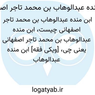 [ویکی فقه] ابن منده عبدالوهاب بن محمد تاجر اصفهانی، از محدّثین اصفهان در قرن پنجم هجری بوده است.