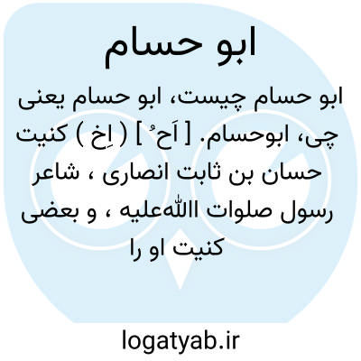 ابوحسام. [ اَح ُ ] ( اِخ ) کنیت حسان بن ثابت انصاری، شاعر رسول صلوات اﷲعلیه، و بعضی کنیت او را ابوالولید و برخی ابوعبدالرحمن گفته اند. رجوع به حسان بن ثابت انصاری شود.