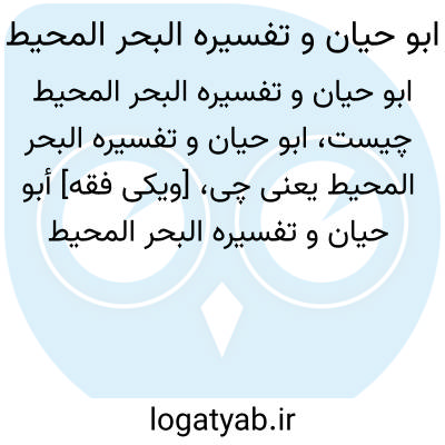 [ویکی فقه] ابو حیان و تفسیره البحر المحیط (کتاب). «ابوحیان و تفسیره بحر المحیط» تالیف بدربن ناصرالبدر عضو هیات علمی دانشگاه امام محمد بن مسعود به زبان عربی، گزارشی از زندگانی ابو حیان محمد یوسف الاندلسی متولد ۷۴۵ ه- و تفسیر او بحر المحیط می باشد. بدین جهت که صاحب تفسیر از بزرگان مفسران اهل سنت است مؤلف بر خود لازم می بیند که گزارشی از آن ارائه دهند تا مورد استفاده همگان قرار گیرد.