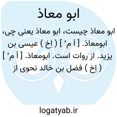 ابومعاذ. [ اَ م ُ ] ( اِخ ) جَبل. انصاری. صحابی است. و کازیمیرسکی گمان میکند که مراد از بومعاد در بیت ذیل منوچهری همین ابومعاذ جبل است که برای مراعات قافیه ذال معجمه را به دال مهمله تبدیل کرده است: