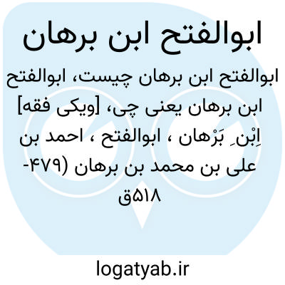 [ویکی فقه] اِبْن ِ بَرْهان، ابوالفتح، احمد بن علی بن محمد بن برهان (۴۷۹- ۵۱۸ق /۱۰۸۶-۱۱۲۴م )، اصولی و فقیه شافعی از مردم بغداد بود.