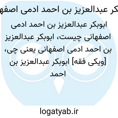 [ویکی فقه] ابوبکر عبدالعزیز بن احمد آدمی اصفهانی. ابوبکر عبدالعزیز بن احمد آدمی اصفهانی، از محدّثین عامّه اصفهان در قرن چهارم هجری بوده است.