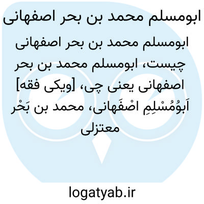 [ویکی فقه] اَبوُمُسْلِمِ اصْفَهانی، محمد بن بَحْر معتزلی (۲۵۴-۳۲۲ق/۸۶۸-۹۳۴م)، کاتب، نحوی، ادیب، متکلم، مفسر، و از رجال دولت عباسی در قرن سوم و چهارم هجری در اصفهان بوده است.