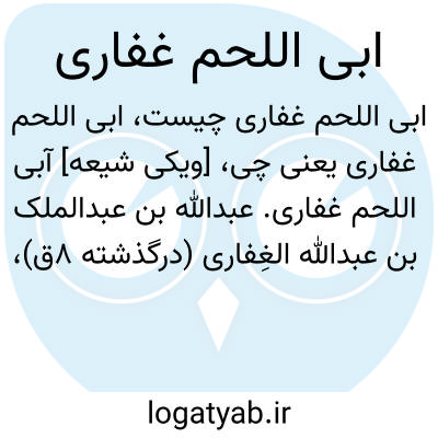 [ویکی شیعه] آبی اللحم غفاری. عبدالله بن عبدالملک بن عبدالله الغِفاری (درگذشته ۸ق)، معروف به آبِی اللَّحْم، از صحابه پیامبر اکرم (ص) که به شهادت رسیده است. عُمَیر، تِرمذی و نَسائی، احادیثی از او نقل کرده اند. در مورد زمان شهادت وی اختلاف نظر وجود دارد؛ غزوات حنین، خیبر و حتی جنگ صفین هم برای آن ذکر شده است.