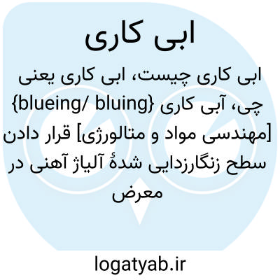 {blueing/ bluing} [مهندسی مواد و متالورژی] قرار دادن سطح زنگارزدایی شدۀ آلیاژ آهنی در معرض هوا یا بخار آب، یا مواد دیگر در دمای مناسب و درنتیجه تشکیل لایۀ آبی رنگ اکسیدی نازک در سطح آن که شکل ظاهری آن را بهبود می دهد و بر مقاومت آن در برابر خوردگی می افزاید