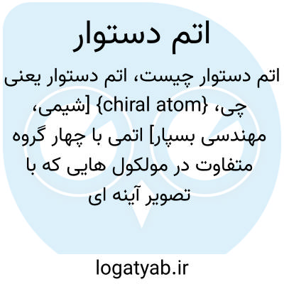 {chiral atom} [شیمی، مهندسی بسپار] اتمی با چهار گروه متفاوت در مولکول هایی که با تصویر آینه ای خود قابل انطباق نیستند