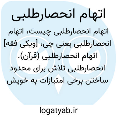 [ویکی فقه] اتهام انحصارطلبی (قرآن). انحصارطلبی تلاش برای محدود ساختن برخی امتیازات به خویش و نفی آن از دیگران می باشد.