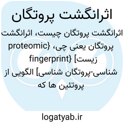 {proteomic fingerprint} [زیست شناسی-پروتگان شناسی] الگویی از پروتئین ها که نشانگر وضعیت خاصی در سامانۀ زیستی است