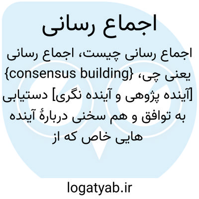 {consensus building} [آینده پژوهی و آینده نگری] دستیابی به توافق و هم سخنی دربارۀ آینده هایی خاص که از اهداف عام آینده نگاری به شمار می آید