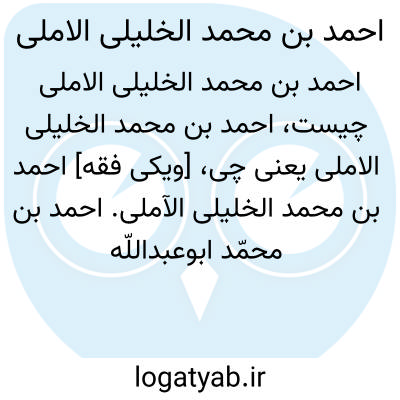 [ویکی فقه] احمد بن محمد الخلیلی الآملی. احمد بن محمّد ابوعبداللّه الخلیلی الآملی (الطّبری)، از راویان شیعه است که نزد رجالیون تضعیف شده و متهم به دروغگویی و جعل حدیث است.
