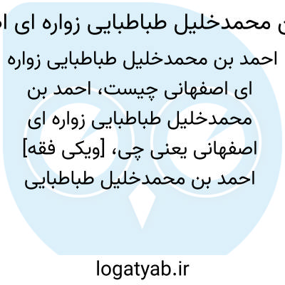 [ویکی فقه] احمد بن محمدخلیل طباطبایی زواره ای اصفهانی، از اطبّاء حاذق اصفهان بوده است.
