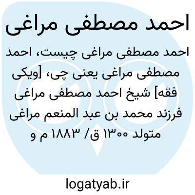 [ویکی فقه] شیخ احمد مصطفی مراغی فرزند محمد بن عبد المنعم مراغی متولد ۱۳۰۰ ق/ ۱۸۸۳ م و متوفای ۱۳۷۱ ق/ ۱۹۵۲ م، در مراغه از توابع جرجا در مصر به دنیا آمد و در قاهره به تحصیل دانش پرداخت.