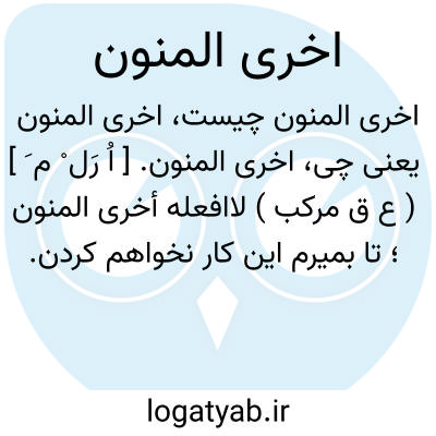 اخری المنون. [ اُ رَل ْ م َ ] ( ع ق مرکب ) لاافعله أخری المنون؛ تا بمیرم این کار نخواهم کردن.