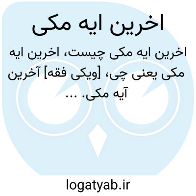 جمله سازی با اخرین ایه مکی اخرین بروز رسانی : ۲۴ ژانویه ۲۰۲۱ اخرین نسل از این خانواده فقط دختر داره برای ادامهٔ نسلشون اونا چهارمین دخترشون را به عنوان پسر بزرگ میکنن و اون مثل پسرا لباس میپوشه و....