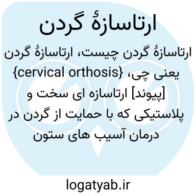 {cervical orthosis} [پیوند] ارتاسازه ای سخت و پلاستیکی که با حمایت از گردن در درمان آسیب های ستون فقرات به کار می رود
